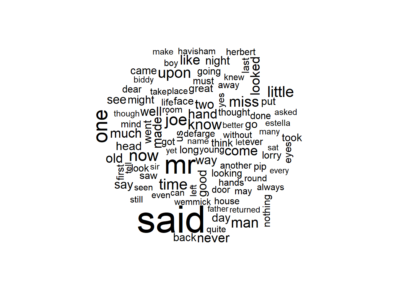 For example, consider the wordcloud package. Let’s look at the most common words in Charles Dickens’ two books as a whole again.